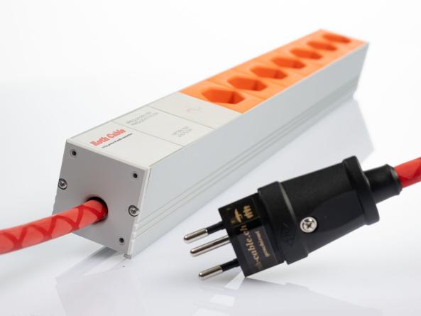 Steckerleiste und Kabel (1,5mm2 Querschnitt) sind auch hier elektrisch geschirmt. Das Kabel verfügt über einen doppelte Schirmung durch eine Aluminiumfolie und einem Kupfergeflecht. Das elektrische Wechselfeld wird somit auf 1-2 Volt/m reduziert (üblich sind 150-200 Volt/m! ). Der strenge Baubiologie-Richtwert beträgt 10 Volt/m.